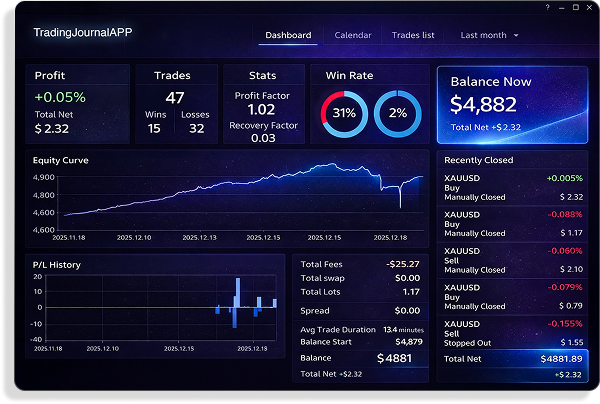 Track and a dd notes and smart tags to each trade to document emotions, fundamentals, sentiment, and strategy usage with detailed notes and tags for every trade, revealing patterns beyond P&L.
